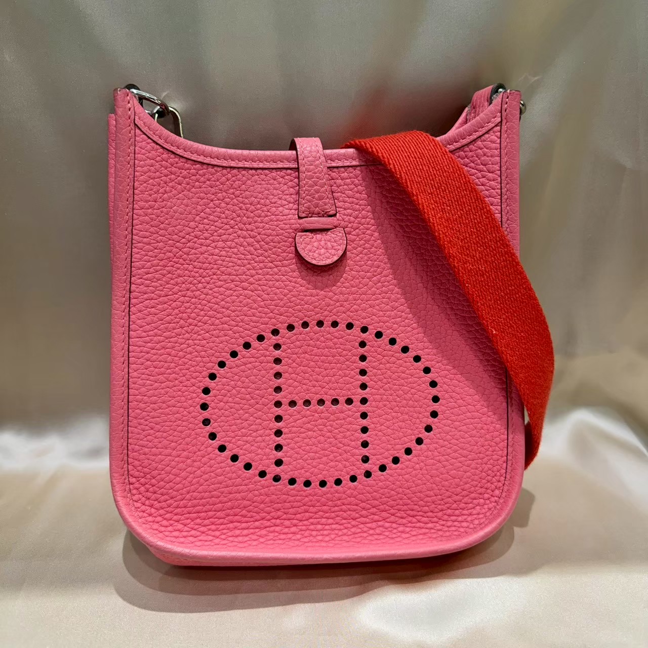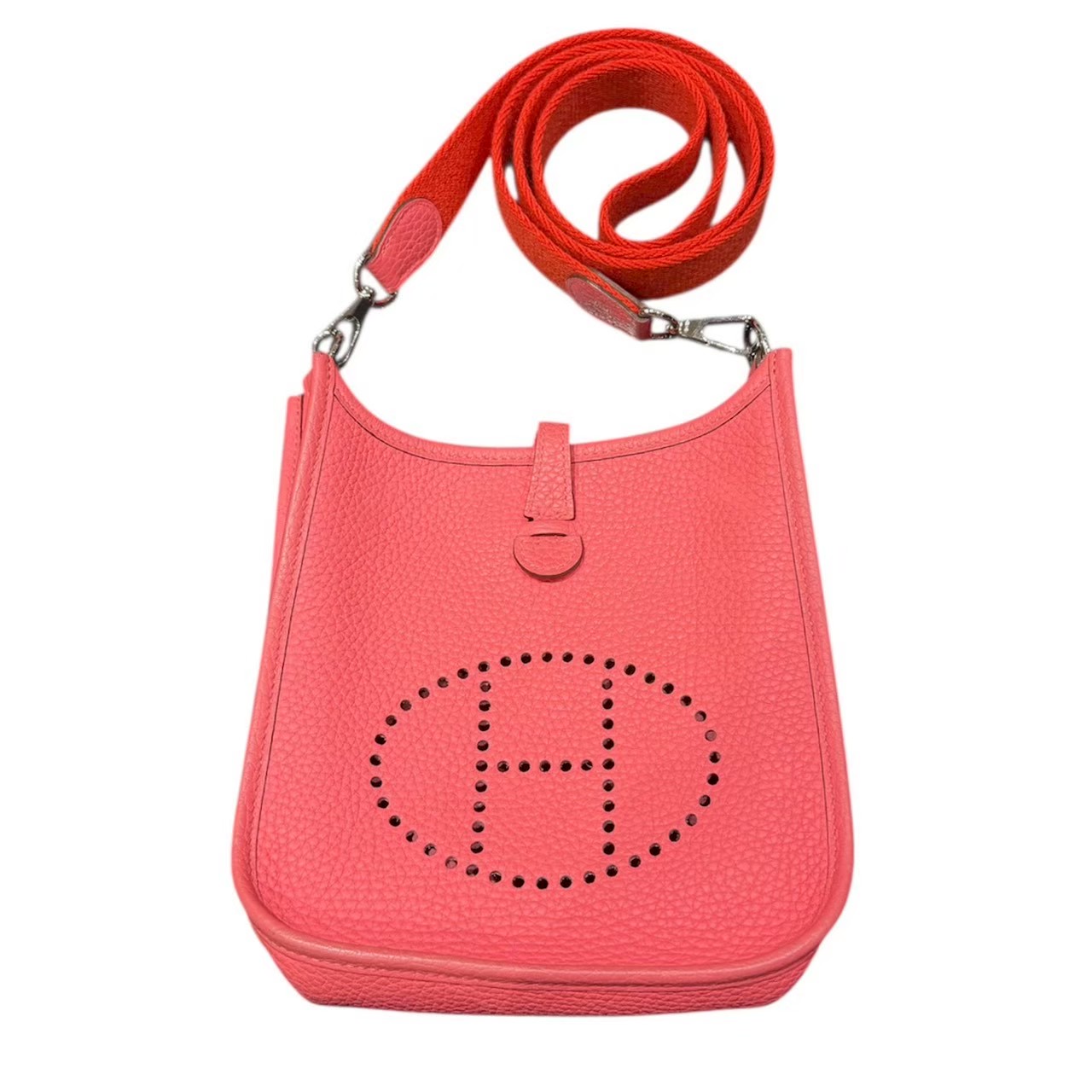 HERMES(エルメス)の人気ショルダーバッグ「エヴリン アマゾン TPM」。フロントのパンチング“H”が象徴的なエヴリンシリーズの中でも、軽快でカジュアルな印象を持つアマゾン仕様モデルです。A刻印(2017年製)のヴィンテージアイテムとしても価値の高い一点です。