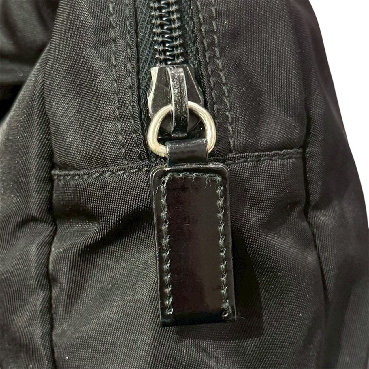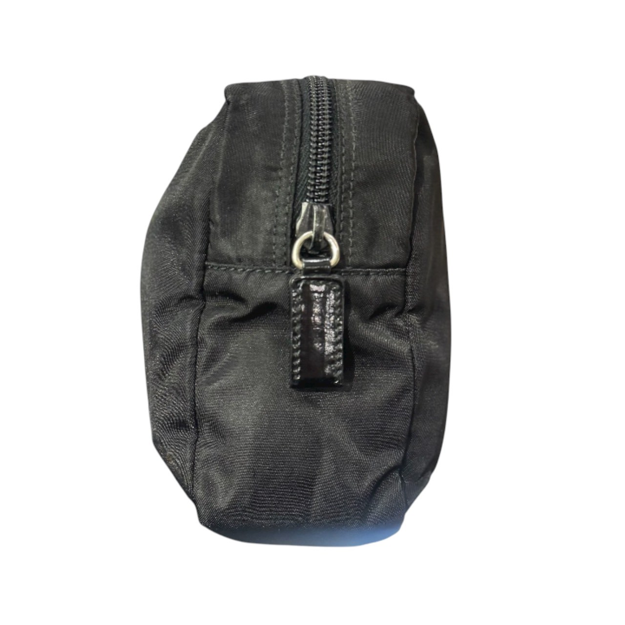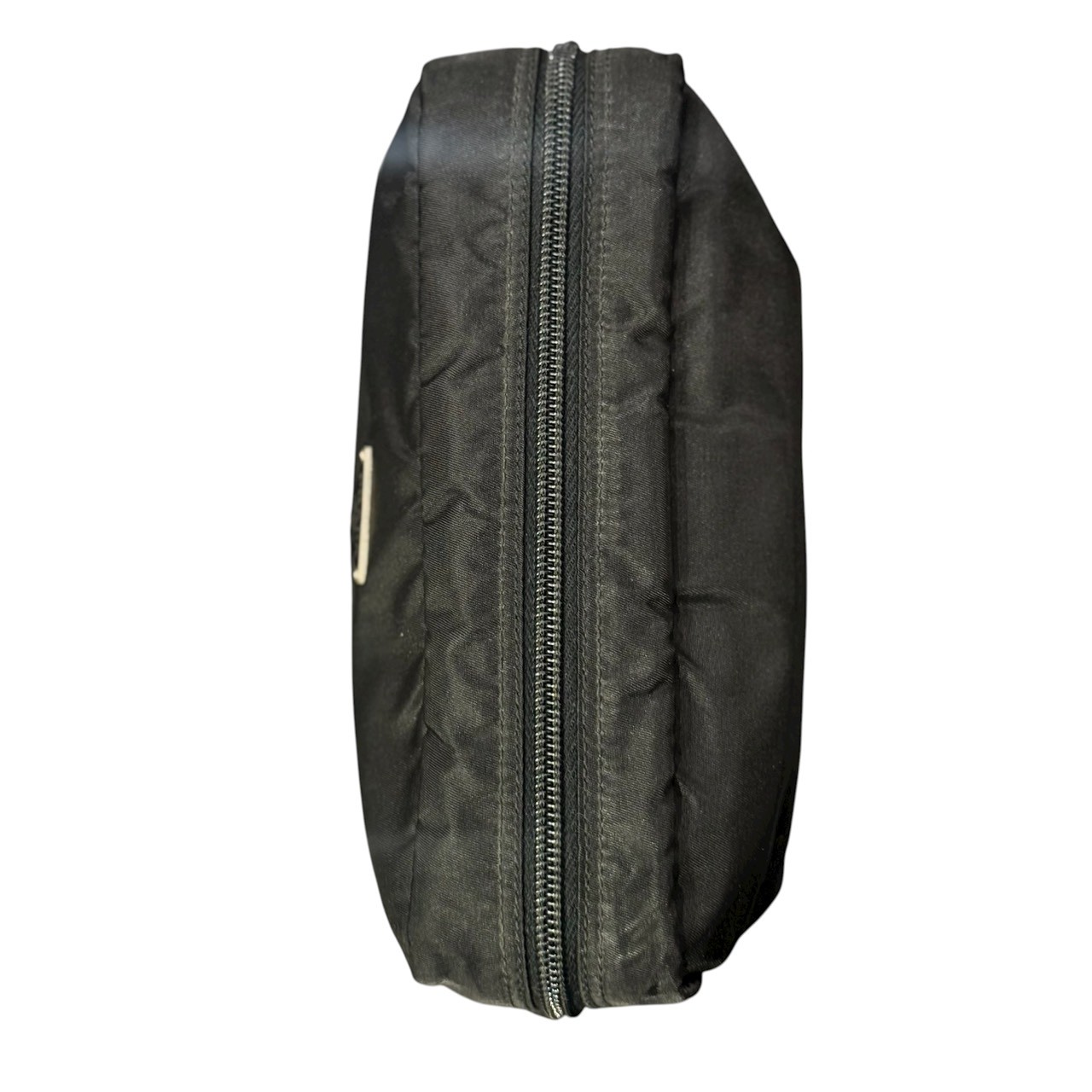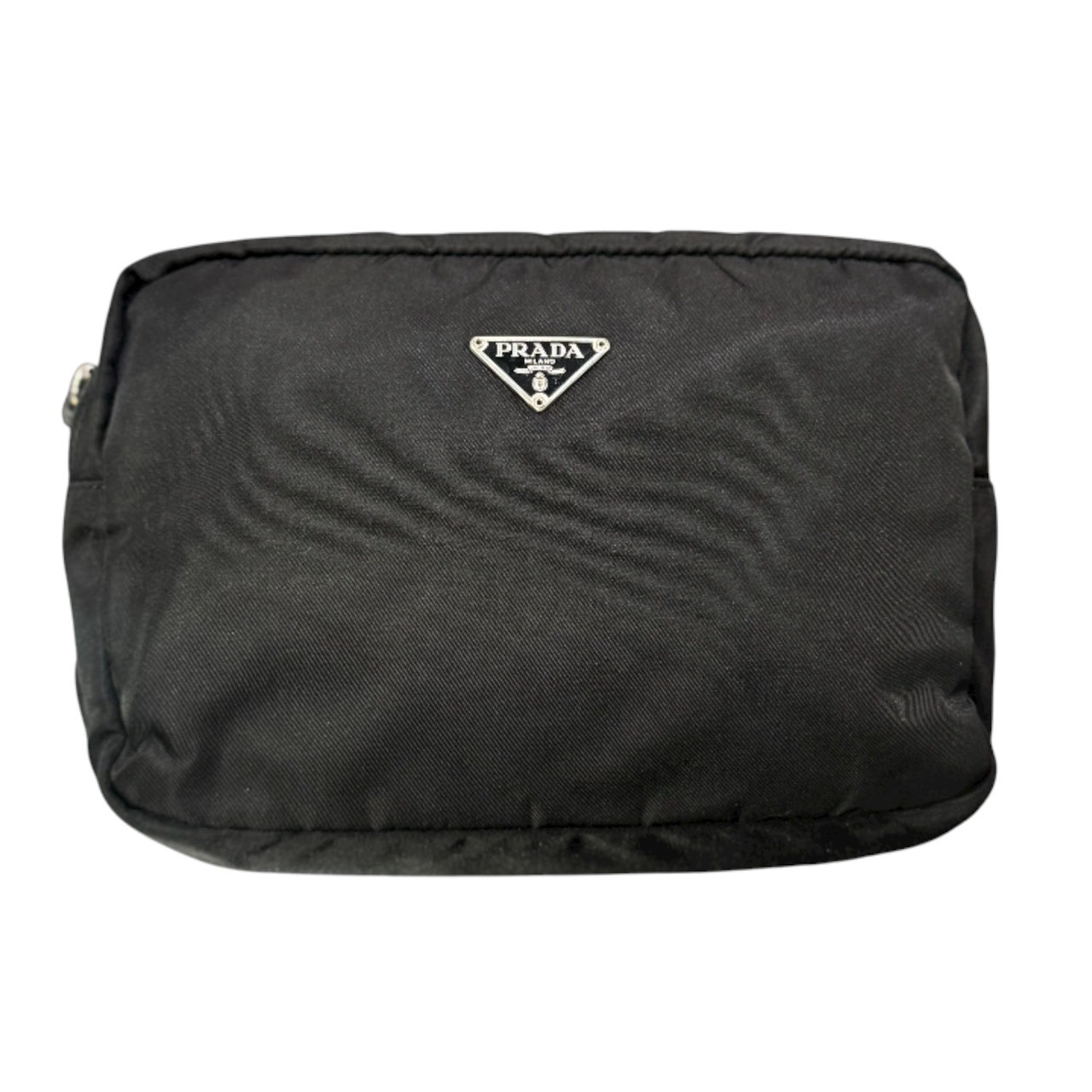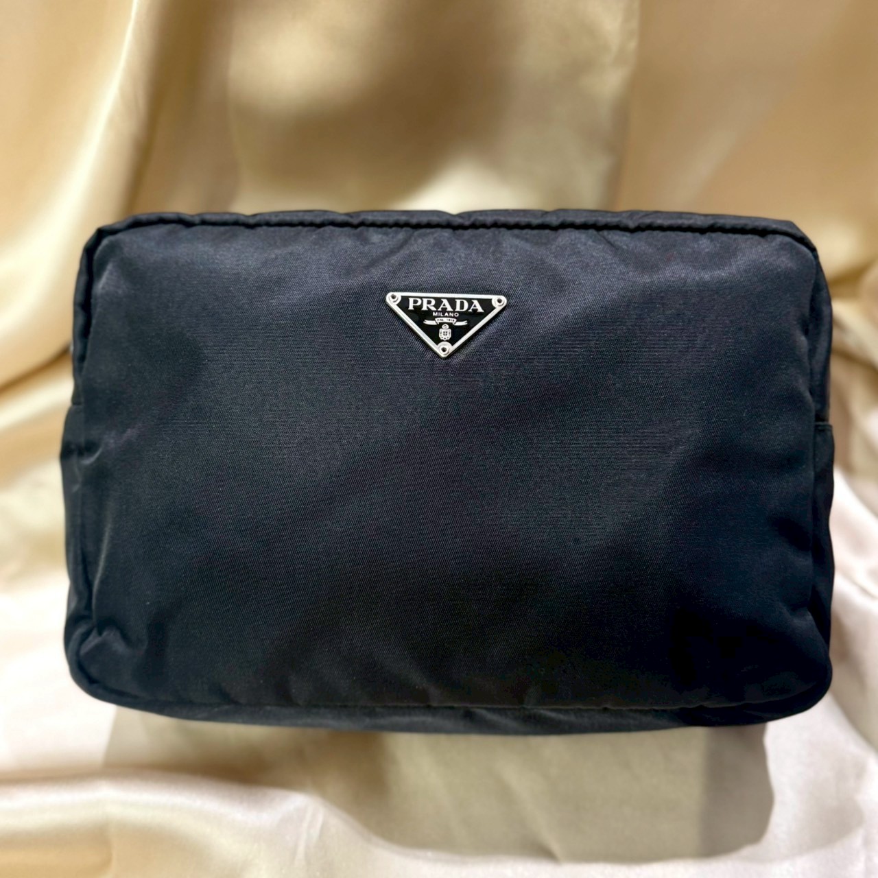 ブランドを象徴する軽量で耐久性の高いナイロン素材を使用した、シンプルで洗練されたポーチ。フロントのトライアングルロゴがアクセントを添え、メイク道具や小物をスマートに収納できます。デイリーにもトラベルにも活躍する万能アイテムです。