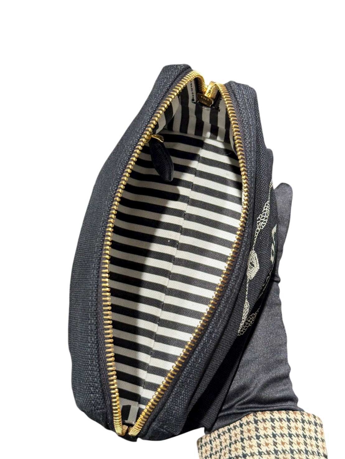 上質なキャンバス素材にブランドロゴが映えるデザインで、シンプルながらも存在感のある仕上がりです。